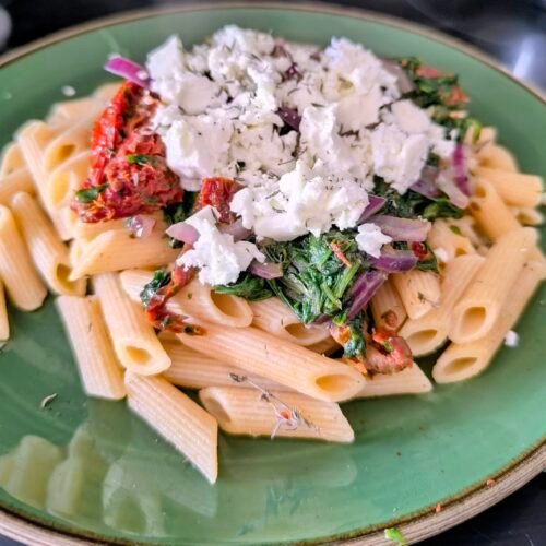 Pâtes crémeuses à la feta, tomates séchées et épinards (recette facile et rapide)